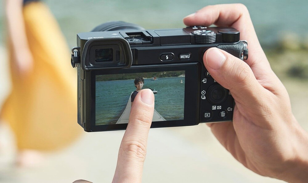 Sony A6100 có màn hình lật lên phía trước, rất tiện cho người quay vlog hoặc tự quay video. Bạn có thể dễ dàng căn khung hình mà không cần người hỗ trợ.